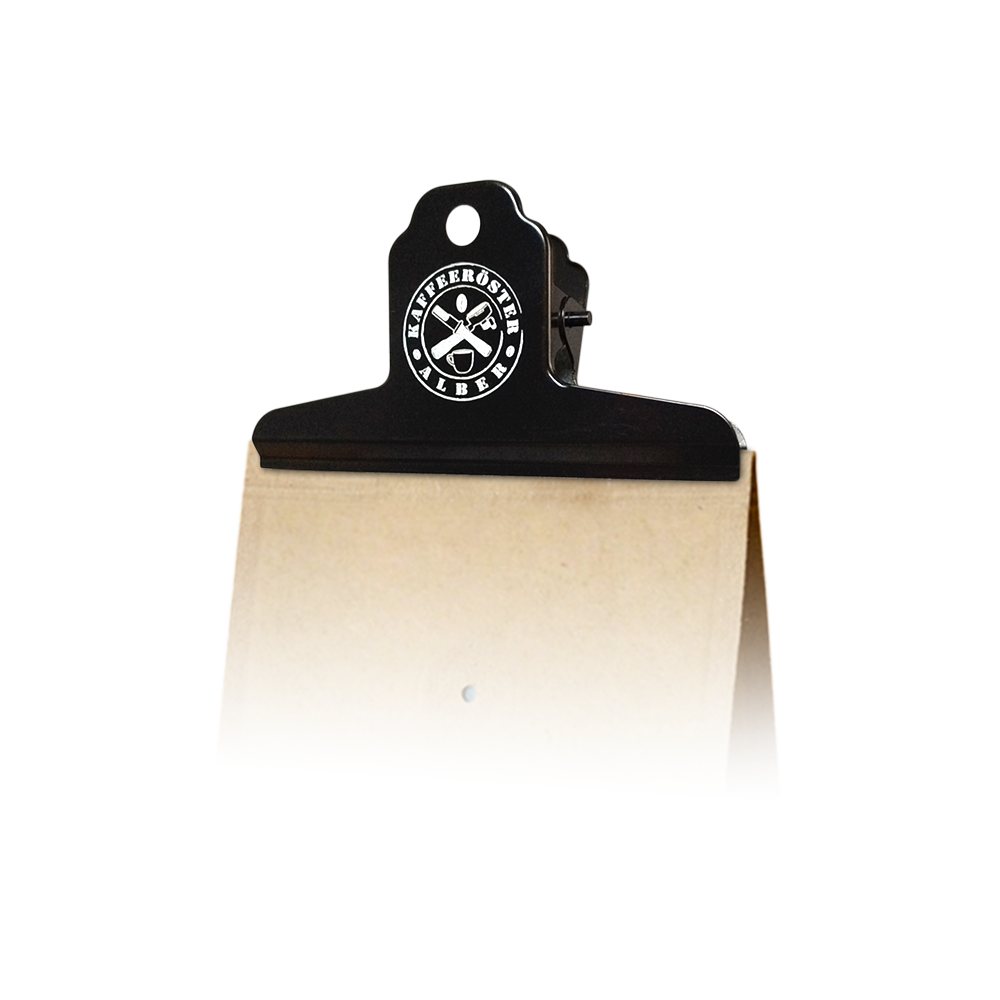 Unser praktischer Tütenclip ist wieder da! In neuem Design. Zum Frischhalten deiner Kaffeevorräte.
